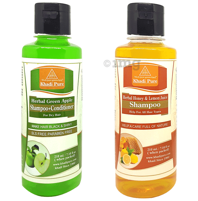 Information about Khadi Pure Combo Pack of Herbal Honey & Lemon Juice Shampoo & Herbal Green Apple Shampoo + Conditioner SLS Free & Paraben Free (210ml Each)