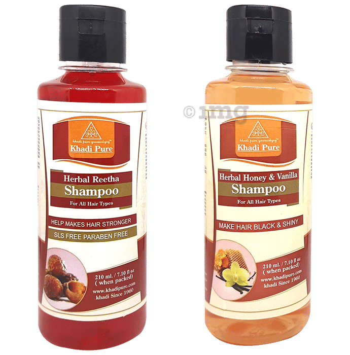 Information about Khadi Pure Combo Pack of Herbal Honey & Vanilla Shampoo & Herbal Reetha Shampoo SLS Free & Paraben Free (210ml Each)