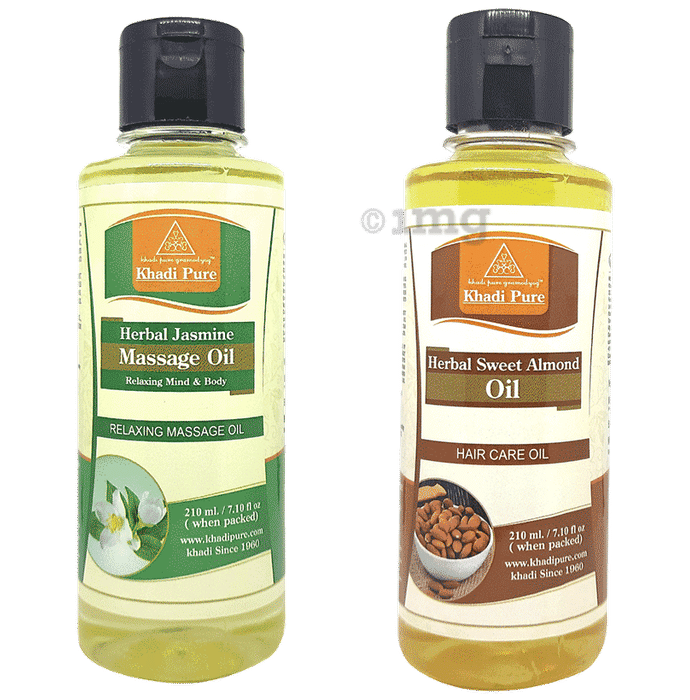 Information about Khadi Pure Combo Pack of Herbal Jasmine Massage Oil & Herbal Sweet Almond Oil (210ml Each)