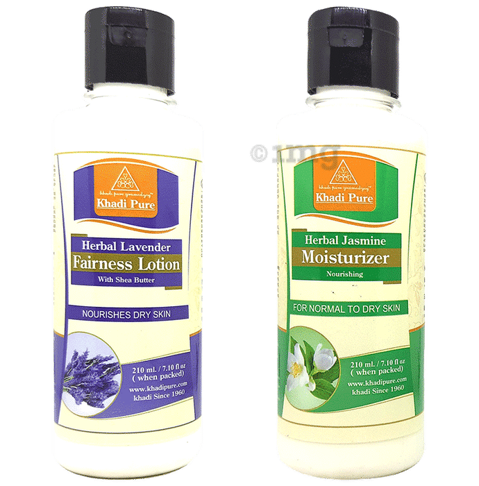 Khadi Pure Combo Pack of Herbal Jasmine Moisturizer & Herbal Lavender Fairness Lotion (210ml Each)