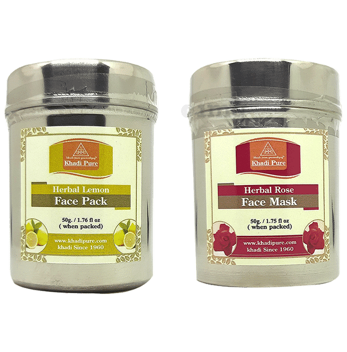 Khadi Pure Combo Pack of Herbal Lemon Face Pack & Herbal Rose Face Mask (50gm Each)