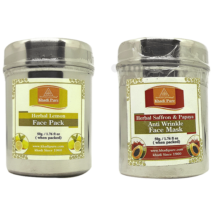 Information about Khadi Pure Combo Pack of Herbal Lemon Face Pack & Herbal Saffron & Papaya Anti Wrinkle Face Mask (50gm Each)
