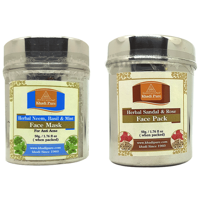 Information about Khadi Pure Combo Pack of Herbal Neem, Basil & Mint Face Mask & Herbal Sandal & Rose Face Pack (50gm Each)