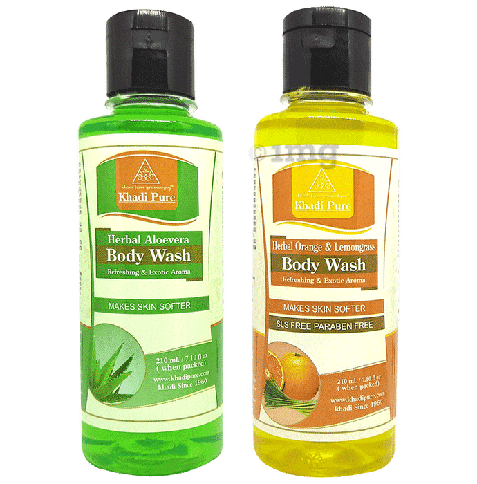Information about Khadi Pure Combo Pack of Herbal Neem & Tulsi Body Wash & Herbal Orange & Lemongrass Body Wash SLS Free & Paraben Free (210ml Each)