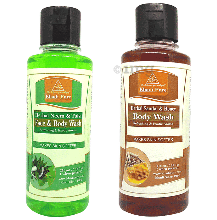 Information about Khadi Pure Combo Pack of Herbal Neem & Tulsi Face Body Wash & Herbal Sandal & Honey Body Wash (210ml Each)