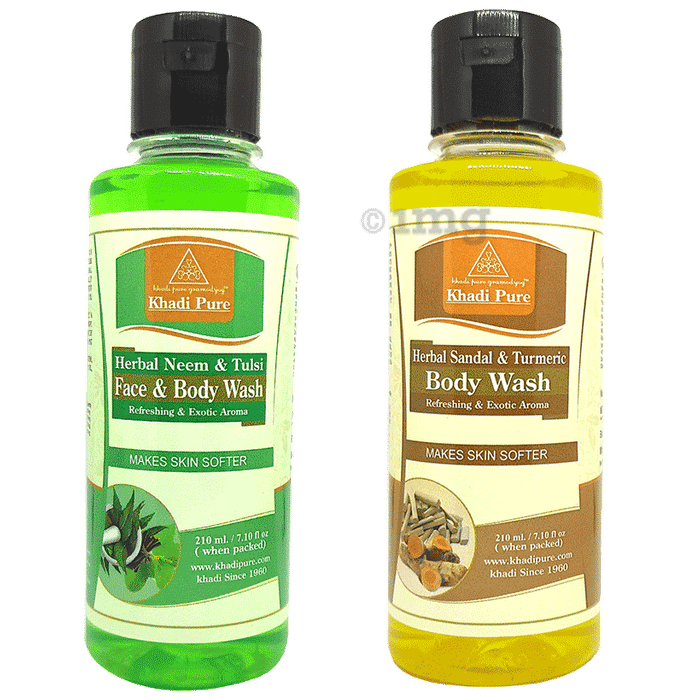 Information about Khadi Pure Combo Pack of Herbal Neem & Tulsi Face Body Wash & Herbal Sandal & Turmeric Face Wash (210ml Each)