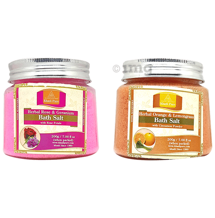 Information about Khadi Pure Combo Pack of Herbal Orange & Lemongrass Bath Salt & Herbal Rose & Geranium Bath Salt (200gm Each)