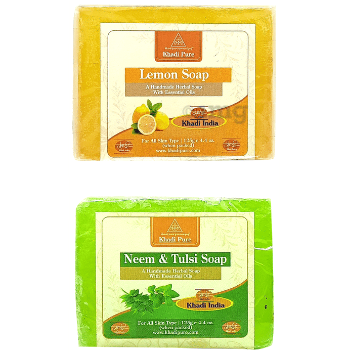 Khadi Pure Combo Pack of Lemon Soap & Neem & Tulsi Soap is a combo of two handmade soaps that cleanse your skin and rejuvenate it.