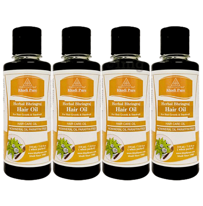 Khadi Pure Herbal Bhringraj Hair Oil No Mineral Oil Paraffin Free is a unique blend of bhringraj and other herbs that restores volume, health, silkiness, and shine so that even the most damaged and dead hair can come back to life stronger, smoother, and healthier than ever before. The therapeutic characteristics of this oil aid in giving relief from headaches and tension. It soothes the mind and enables proper blood circulation in the scalp. It strengthens the roots and prevents hair fall. This hair oil is an amazing aid for baldness and hair growth.