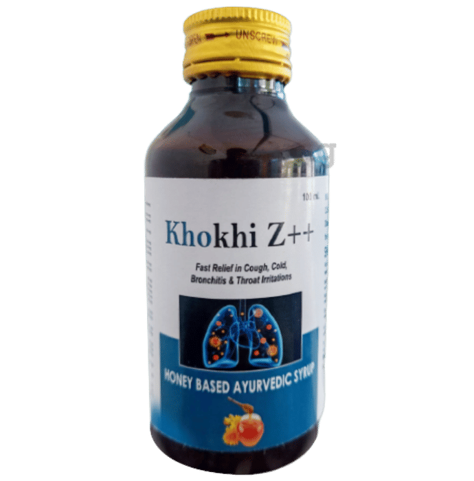 Khokhi Z++ Cough Syrup is used for cough, cold and fever. It may provide fast relief from bronchitis and throat irritation. It is formulated with honey, goglu and kapoor.