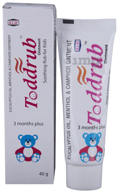 Kidyrub Ointment is a soothing rub for kids (above 3 months). It has anti-microbial and anti-septic properties that has mild analgesic action also that is it helps relieve pain.