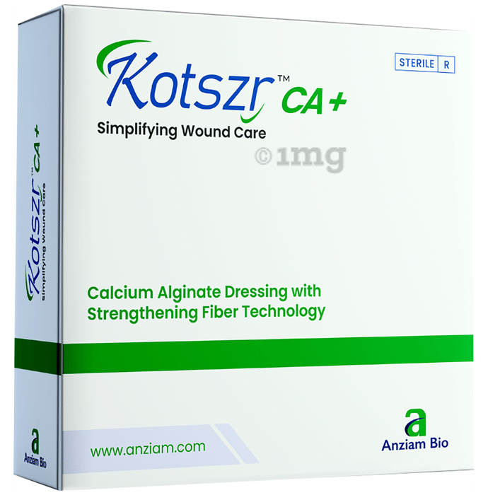 Kotszr CA+ Calcium Alginate Dressing is a soft, sterile, single-use dressing derived from natural brown algae, scientifically proven for its wound conditioning capabilities. Designed to conform easily to various wound beds, including cavities, it assists in accelerated wound conditioning by maintaining an optimal moist environment. This dressing is particularly suitable for mild exuding wounds. It helps in the easy removal of dressings from the wound site.