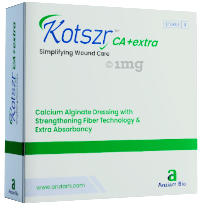 Kotszr CA+ Extra Calicum Alginate Dressing is a soft, sterile, single-use dressing derived from natural brown algae, scientifically proven for its wound conditioning capabilities. Designed to conform easily to various wound beds, including cavities, it assists in accelerated wound conditioning by maintaining an optimal moist environment. This dressing is particularly suitable for mild exuding wounds. It helps in the easy removal of dressings from the wound site.