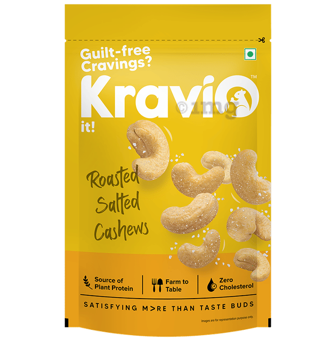 Kravio Roasted Salted Cashews combines the natural richness of cashew nuts roasted in a balanced salted flavour. Cashews can help provide healthy fats, plant-based protein, and essential nutrients such as magnesium and antioxidants, which may help support overall well-being. With zero trans fat and no preservatives, this snack can help offer a wholesome and flavorful choice. The carefully curated seasoning can add a gentle heat to complement the cashews' natural creaminess for a satisfying experience.