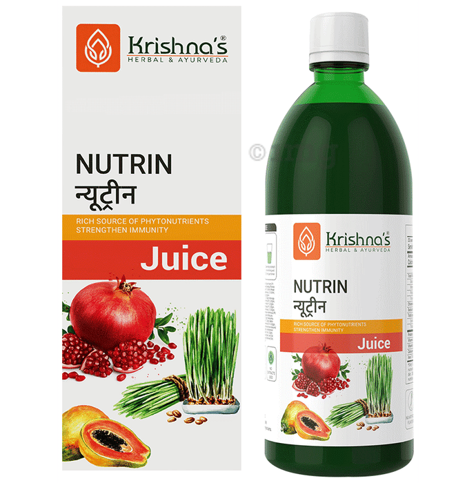 Krishnas Herbal & Ayurveda Nutrin Juice is a plant-based formulation made with a blend of over 30 herbal and fruit-derived ingredients. This juice features components like wheatgrass, aloe vera, amla, beetroot, moringa, and more. Designed to be part of a daily health-focused lifestyle, it contains naturally occurring phytonutrients and antioxidants. This juice can be a flavourful option for those seeking a fruit- and herb-based formulation to help support general vitality through natural means.