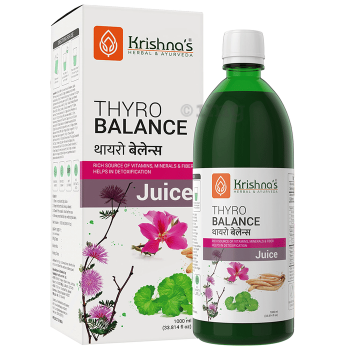 Krishnas Herbal & Ayurveda Thyro Balance Juice is an Ayurvedic formulation rich source of vitamins, minerals and fibre. The formula supports the healthy functioning of the thyroid gland. It promotes the detoxification process. The juice is free from harmful chemicals and safe for consumption.