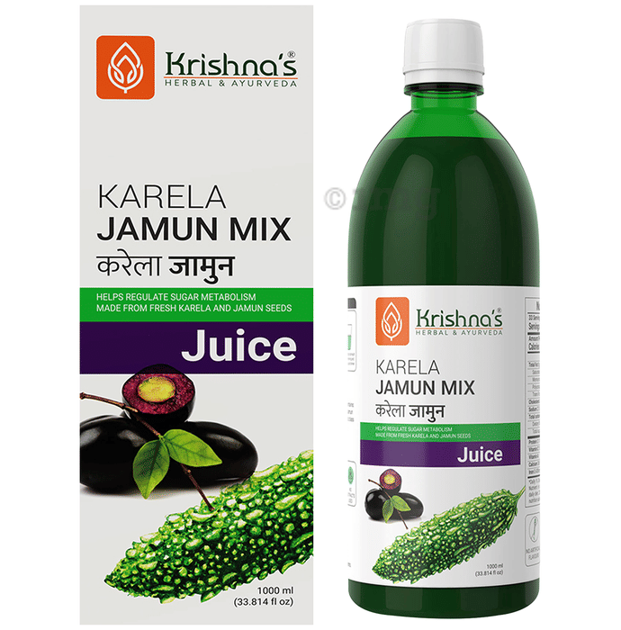 - Krishnas Karela Jamun Mix Juice contains Karela (bitter gourd) and Jamun (Indian blackberry), ingredients traditionally used as part of nutritional support.