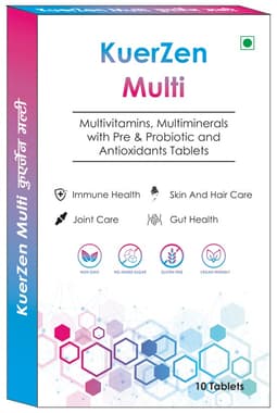 KuerZen Multi Tablet contains a balanced blend of essential vitamins and minerals. It provides comprehensive nutritional support for overall health. It includes prebiotics and probiotics for a healthy gut.
