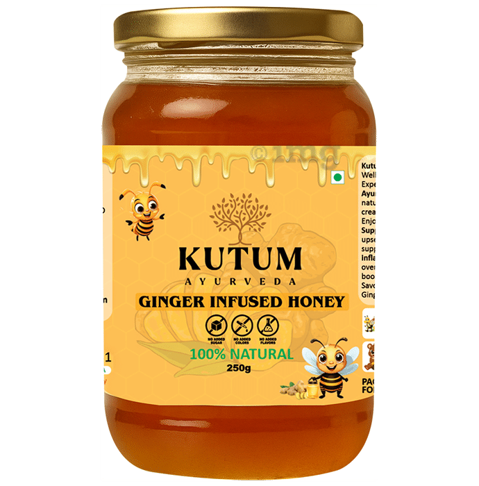 Kutum Ayurveda Ginger Infused Honey is rich in natural antioxidants and nutrients, it may help provide quick energy, support digestive comfort, contribute to soothing the throat, and assist in overall well-being. With its delicate sweetness, it can also be used as a natural alternative to refined sugar in foods and beverages.