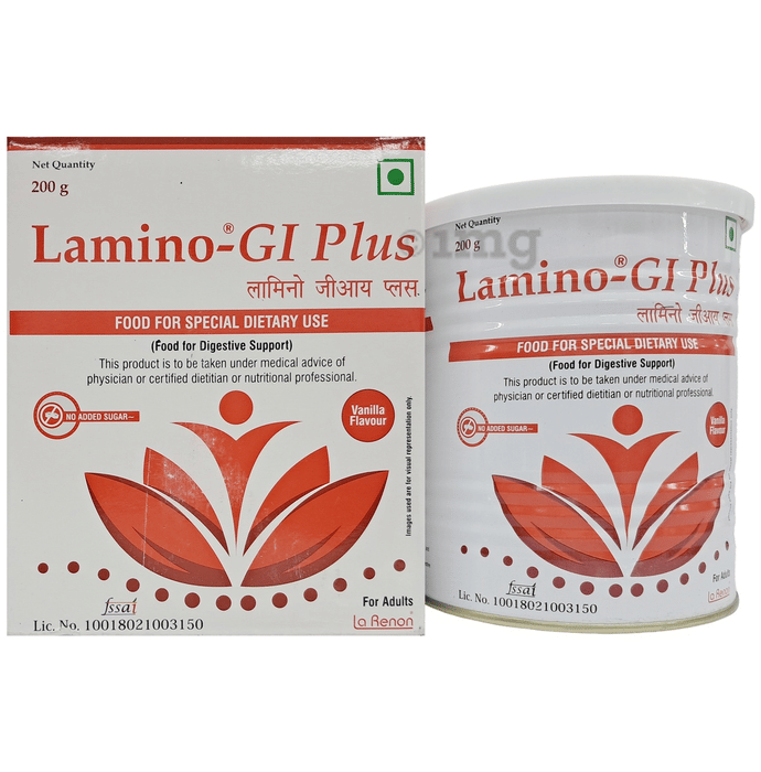 Lamino-GI Plus Vanilla Sugar Free Powder is a dietary supplement formulated to support gastrointestinal health. It is formulated with essential nutrients like vitamins, minerals, amino acids, s-adenosyl methionine, alpha lipoic acid, choline, and taurine.