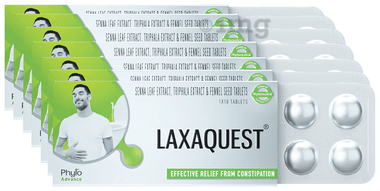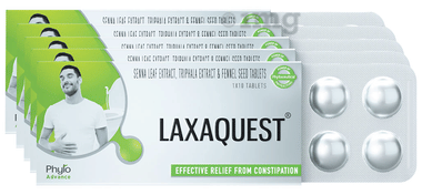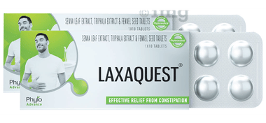 LaxaQuest Tablet / Effective Relief From Constipation is crafted to help support digestive health and promote regular bowel movements. Each film-coated tablet contains active ingredients such as Senna Leaf Extract for stimulating bowel movement, Triphala Extract to assist in colon lubrication, and Fennel Seed for easing bloating and enhancing digestion. Developed using PhytoAdvance technology, this proprietary Ayurvedic formulation provides gentle relief from constipation and supports digestive wellness. It can be beneficial for individuals experiencing occasional or chronic constipation, LaxaQuest tablets offer a natural approach to digestive care, ensuring regularity and comfort with each dose.