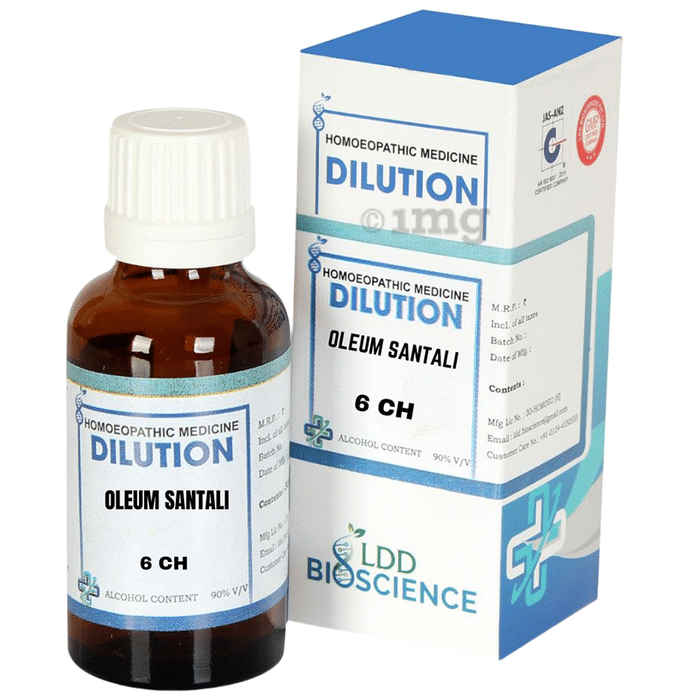 LDD Bioscience Oleum Santali Dilution 1000 CH is a disinfectant expectorant and a stimulant. It helps in relieving urinary infections and also relieves burning sensations while urinating.
