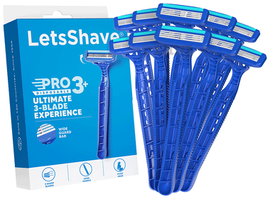 LetsShave Pro 3 Plus Disposable Razor is a 3 Blades, Use & Throw razor that does not require you to replace its blades. It has 3 sharp blades that are precisely positioned on an angulated blade platform to make closer contact over facial contours and thus give a smooth, clean and comfortable shave. It has a lubricating strip containing aloe vera to soothe and calm even sensitive skin against friction and irritation. Aloe has antiseptic and anti-inflammatory capabilities to refresh skin thus helps keep the skin soft, smooth, and healthy. Pivoting head adapts to the facial contours and gives a comfortable shave without any nicks and cuts. The superior open flow architecture is at the back of blades to make it easy to rinse and thus prevent blades from clogging, making the blades stay clean and thus eliminating corrosion for a longer blade life. This, in turn, offers a higher number of close shaves than other disposable razors. The ergonomic non-slip grip handle that gives an exceptional grip, even in the shower or wet conditions.