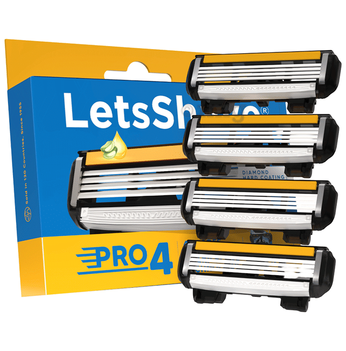 LetsShave Pro 4 Shaving Blade are 4-Blade razors with 4 stainless steel blades that are carefully positioned on the angulated blade platform to deliver a smooth and gentle shave in a single stroke.