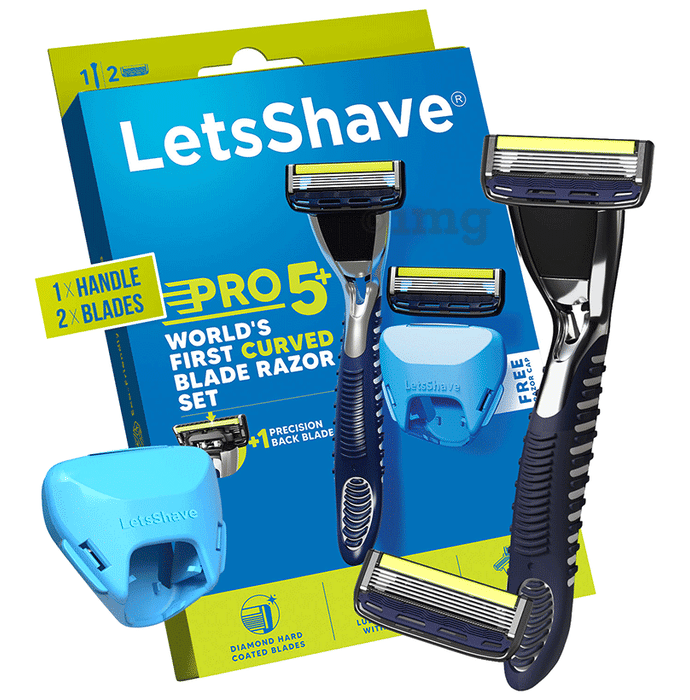 LetsShave Pro 5 Plus Shaving Razor LetsShave Pro 5+ designed with a bent five-blade shaving platform enables accurate shaving with precision blades. A conveniently designed trimmer with a safety comb sits on the back of the cartridge for moustaches, beards, sideburns, and other hard-to-reach spots. The sleek flow guard bar not only pulls the skin tight providing a close comfortable shave but also helps you to apply the right amount of foam by clearing excess foam. The rounded lubrication strip of the LetsShave Pro 5+ offers effective absorption of lubrication and protects sensitive skin.