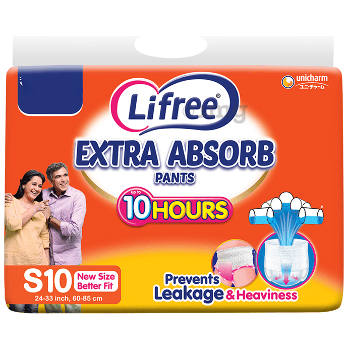 Lifree Extra Absorb Pants Unisex Adult Diaper is easy to use like underwear and prevents leakage for up to 10 hrs. It has a powerful absorbing core with approximately 6 glasses of absorption. Lifree Extra Absorb pants have a double stretchable band making it easy to pull up and down by yourself. The newly added leg side wall feature provides side fitting and prevents leakage to keep you worry-free all day.