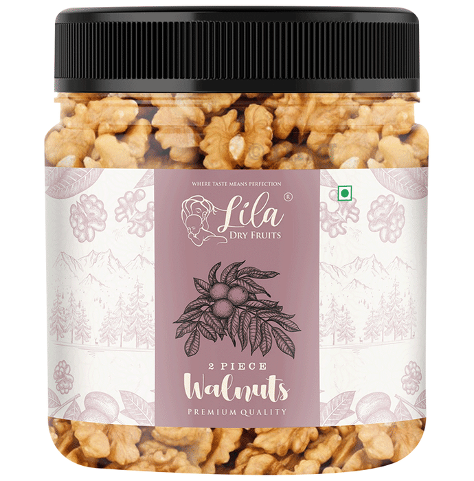 Lila Dry Fruits 2 piece Walnuts Dry Fruits is a premium selection of whole walnuts sourced from the finest crops and packed to preserve their natural freshness and flavour. Walnuts are renowned for their distinctively rich taste and crunchy texture, making them a popular choice for snacking and cooking. Good source of omega-3 fatty acids, antioxidants, and various vitamins and minerals, walnuts provide a multitude of health benefits. They are known to support heart health, brain function, and overall well-being. Additionally, walnuts are a good source of protein, dietary fibre, and healthy fats, making them a satisfying and nutritious snack option.