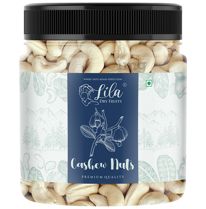 Lila Dry Fruits Cashews Nuts is a premium selection of whole cashew nuts carefully sourced and packed to ensure freshness and quality. Cashews have a rich, buttery flavour and creamy texture, making them a popular choice for snacking and cooking. A good source of healthy fats, protein, and various vitamins and minerals, cashews may provide a multitude of health benefits. They are also a good source of monounsaturated fats, which are beneficial for heart health, and they also contain essential nutrients like magnesium, phosphorus, and zinc, which support overall well-being. Cashews as a convenient snack on their own or incorporate them into your favorite recipes. Add them to trail mixes for a satisfying crunch, blend them into creamy cashew butter, or use them as a topping for salads and stir-fries. Packed with essential nutrients and free from additives and preservatives. Lila dry fruits Cashews are the perfect choice for anyone looking to indulge in a healthy and delicious snack.