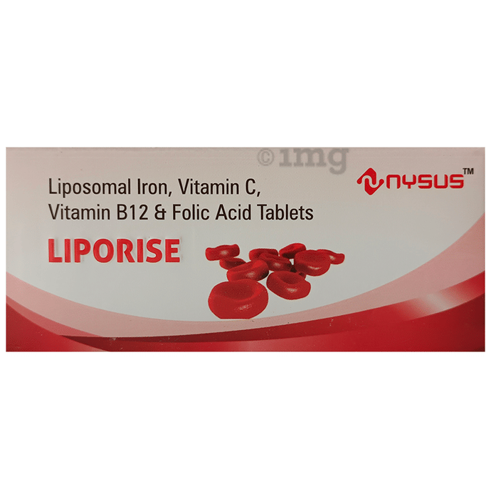 Liporise Tablet is a specialized dietary supplement formulated with a unique combination of liposomal iron, vitamin C, vitamin B12, and folic acid. This formulation is designed to support healthy iron levels, promote red blood cell production, and enhance overall well-being.