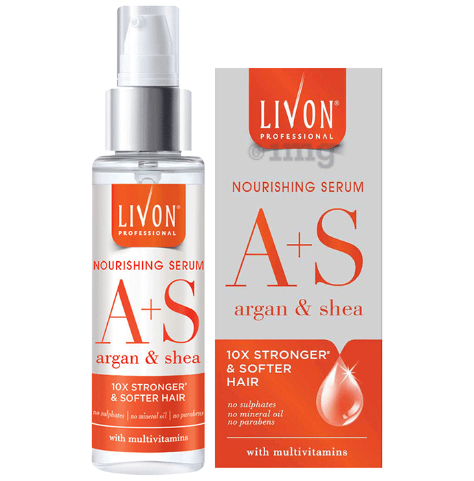Livon Professional A+S (Argan & Shea) Nourishing Hair Serum is specially crafted to deliver softer, more manageable hair with the help of powerful ingredients like Argan oil, Shea butter, and multivitamins. Its lightweight, non-sticky formula is suitable for all hair types, including chemically treated hair. This serum deeply nourishes the strands and can make them appear smoother, glossier, and more tamed. Powered with plant-based actives, it is free from parabens, sulphates, and mineral oil, making it a conscious addition to your haircare routine. The unique formulation combines Argan Oil to soften hair texture, Shea Butter to deeply nourish and improve hair health, and Multivitamins which may protect hair from external damage. It serves multiple purposes including being used as a heat protectant, pre-shampoo treatment, or overnight spa serum. With a versatile usage profile and clean ingredient list, this serum can help elevate your daily haircare experience.