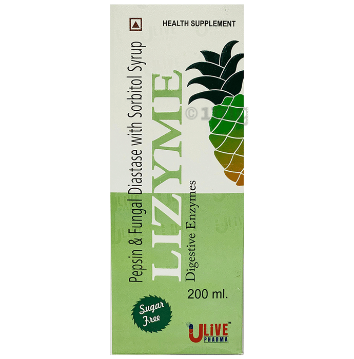 Lizyme Digestive Enzyme Sugar Free Syrupis a combination of fungal diastase and pepsin syrup. It is a supplement that helps to strengthen the digestive system and detoxifies your body. It may help in getting rid of gas and bloating. Together with proteolytic (pepsin) and amylolytic (diastase), it increases appetite and helps in the proper working of digestive disturbance and production of gastric. This syrup helps in proper digestion and removes unwanted toxins from the body.