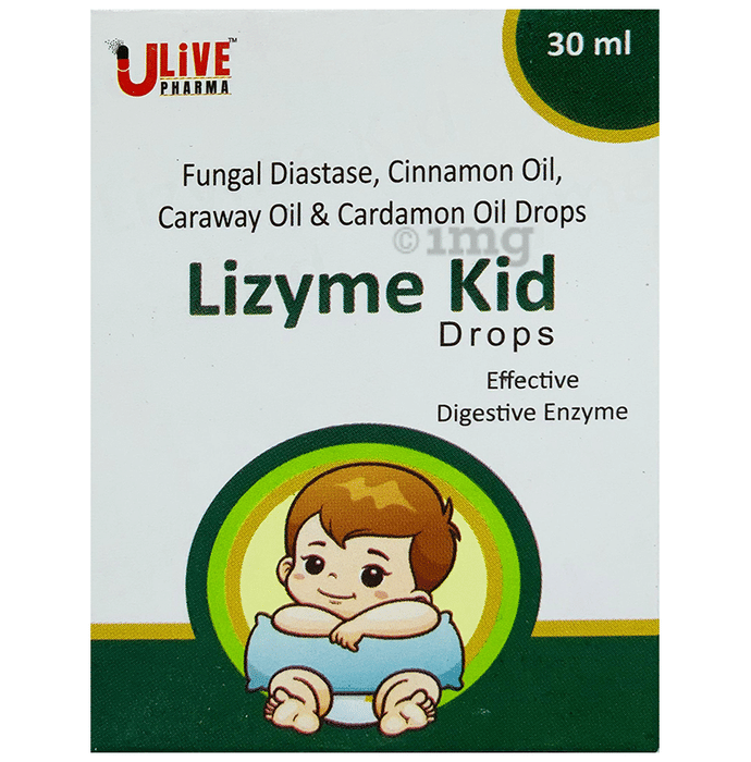 Lizyme Kid Oral Drops is a digestive support supplement that can help improve digestion and reduce indigestion. It might assist in reducing flatulence, dyspepsia, and sour feelings in the stomach.