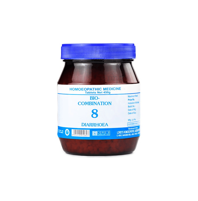 Lords Bio-Combination 8 Tablet is a homoeopathic tablet that helps manage loose stools and diarrhoea. It provides relief from stomach ailments.