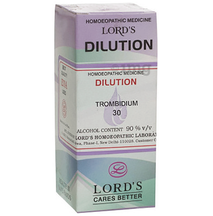 Lords Trombidium Dilution 30 is a homoeopathic remedy which is useful in coping up with abdominal pain as well as loose motion. It can also be used as a tincture for animals. It can also be applied to itchy skin as well as being helpful in digestion. Although homoeopathic medicines do not have any known side effects, it is still advisable to take these medicine with precaution and according to the doctors prescription.