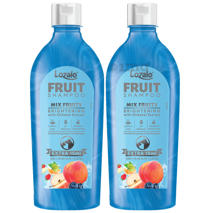 Lozalo Fruit Coat Brightening Pet Shampoo Mix Fruit is a grooming product designed to bring out the natural shine and brightness in your pet's coat. With its special formulation enriched with Shikakai extract, it not only conditions the fur but also promotes a healthy, lustrous appearance. The shampoo is pH-balanced, ensuring it's gentle on your pet's skin while effectively cleansing and revitalising their coat. Free from parabens and other harsh chemicals, it offers a safe and nurturing wash, suitable for dogs and cats of all breeds.