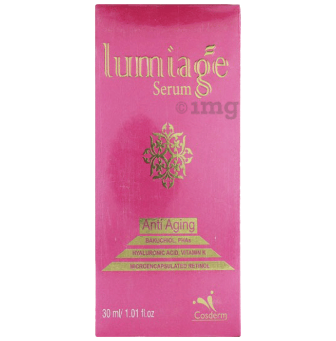 Lumiage Serum is formulated with bakuchiol, tremeela mushroom, pHAs, micro encapsulated retinol, vitamin K, hyaluronic acid and niacinamide that resurfaces, visibly rejuvenates and repairs the look of ageing. Lumiage anti ageing serum accelerates skin renewal process and reduces the appearance of skin ageing, age spots and roughness of the skin. Active microencapsulated pure retinol helps to increase the turnover of the cells and production of collagen. Lumiage serum improves and protects skin elasticity and helps in speeding up the skin healing process. Vitamin C in lumiage serum helps to fight signs of ageing which includes uneven skin tone and discoloration. Lumiage serum also helps in reducing the appearance of fine lines and wrinkles, which helps in improving skin firmness. It penetrates deeper layers of skin and offers faster and visible results in few applications.
