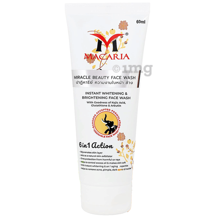 Macaria Miracle Beauty Face Wash is infused with Advanced Bangkok Technology for skin whitening, brightening, and lightening. This face wash can help gently exfoliate, removing dead skin cells and impurities, while providing deep hydration with hyaluronic acid. Suitable for all skin types, it targets dark spots and pigmentation, revealing a radiant and flawless complexion in just 2 minutes.