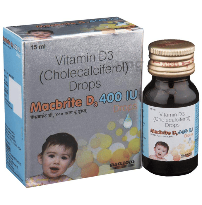 Macbrite D3 400IU Drops is a specially formulated dietary supplement designed to cater to the unique vitamin D3 needs of children. These drops offer a convenient and easy way to ensure that your child receives essential vitamin D3, which plays a crucial role in their growth and development. With a child-friendly, palatable formula, macbrite D3 drops make it simple to support your child's overall health and well-being.