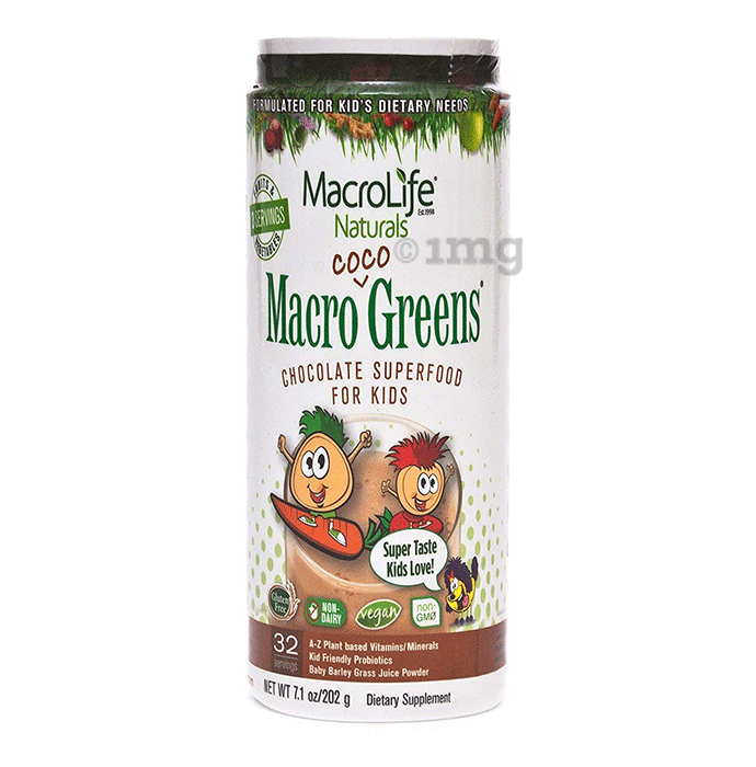 - Macro Coco Greens Powder contains a blend of superfoods, fruits, and vegetables, which are believed to provide a range of essential vitamins and minerals for children