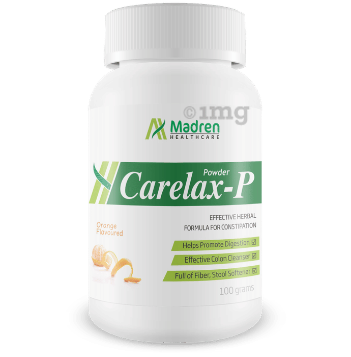 Madren Healthcare Carelax-P Powder is a herbal and ayurvedic formula that provides effective relief from constipation. It also helps in improving digestion. Enriched with powers of natural fibre, the powder is useful in colon cleansing and controlling cholesterol level. Because of its natural gelatinous content, it reduces the absorption of glucose and controls diabetes.