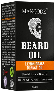 Mancode Eucalyptus Black Pepper Oil Beard Oil is a pure and natural oil that is useful in grooming moustaches and beards. The oil helps promote hair growth and has anti-bacterial properties. It helps keep the beard and moustache soft and is light and non-greasy.