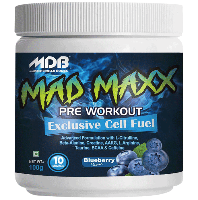 - Take 1 Scoop (1 Serving) of MDB Mad Maxx Pre Workout and mix with 300-350 ml of water or juice or any beverages as you like