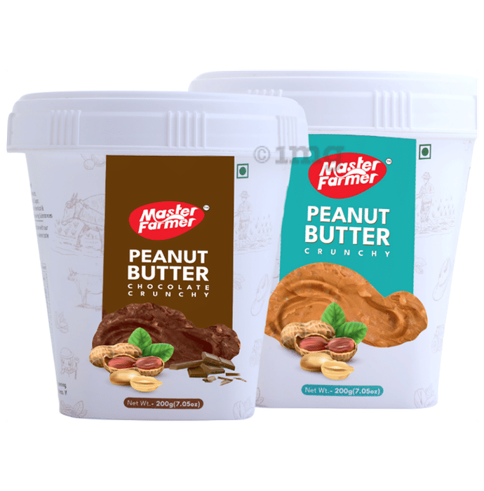 Master Farmer Peanut Butter Crunchy and Chocolate Crunchy is a combo pack of crunchy peanut butter and chocolate peanut butter made from premium roasted peanuts. It contains healthy fats, protein and fibre and makes for a healthy and indulgent treat. It has a crunchy texture and a rich flavour that can help enhance the snacking experience.