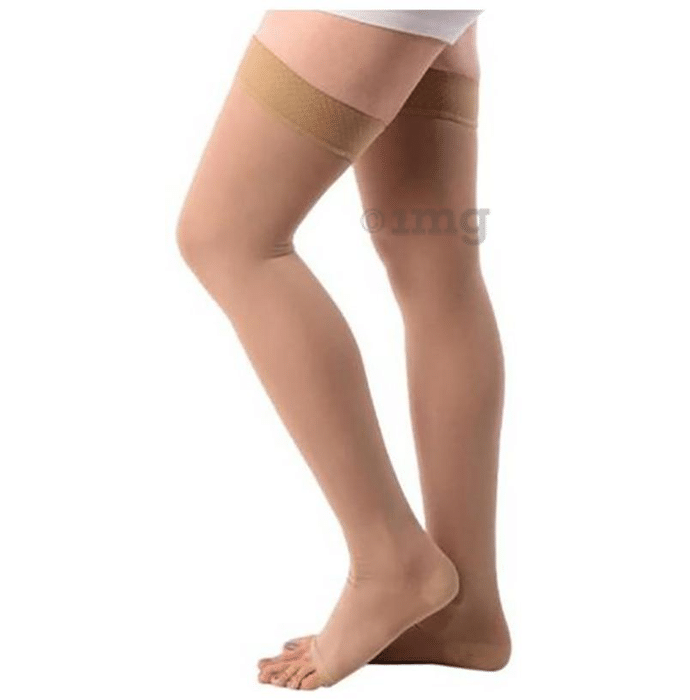 Maxis Cotton Thigh Length Stocking provides the wearer a flexible and comfortable fit which makes the stockings remain in correct position and in place without constricting skin and leg. The compression at the at the ankle is more and it reduces gradually upwards the leg part to promote healthy circulation and keep you feeling energized. It is available in varied sizes giving the customer a wide range of options to choose from depending on their size and comfort. These sizes are extra small, small, medium, large, extra large, XXL, XXXL, and XXXXl.