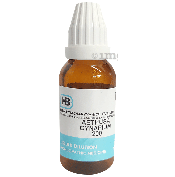 M Bhattacharyya & Co Pvt Ltd Aethusa Cynapium Dilution is a homeopathic solution prepared from fool's parsley. It is utilised for various health concerns, including mental confusion, digestive issues in children, milk intolerance, and headaches from mental exertion. This dilution is formulated following homeopathic principles to ensure quality and efficacy. Consult a healthcare professional for appropriate usage.