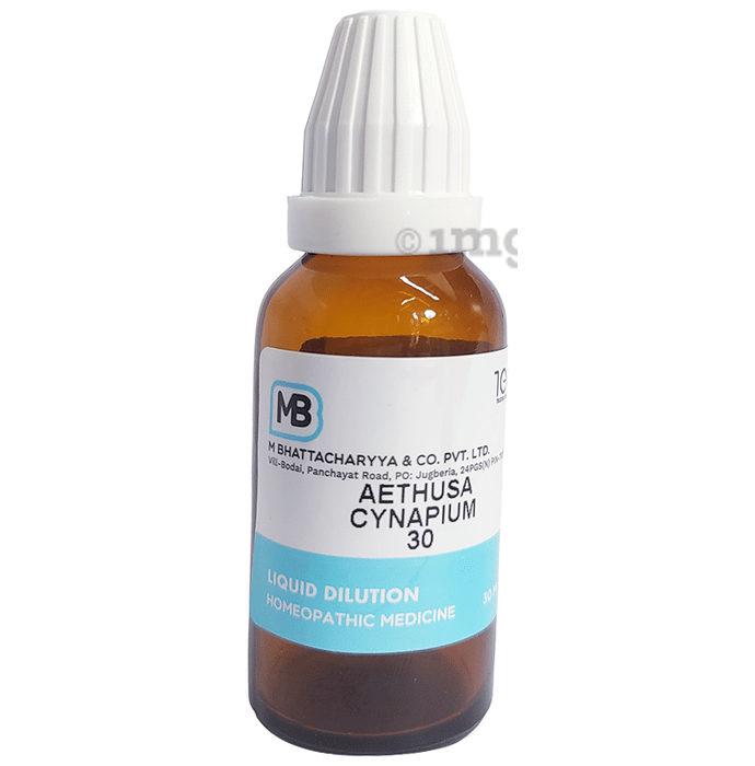 M Bhattacharyya & Co Pvt Ltd Aethusa Cynapium Dilution is a homeopathic solution prepared from fool's parsley. It is utilised for various health concerns, including mental confusion, digestive issues in children, milk intolerance, and headaches from mental exertion. This dilution is formulated following homeopathic principles to ensure quality and efficacy. Consult a healthcare professional for appropriate usage.
